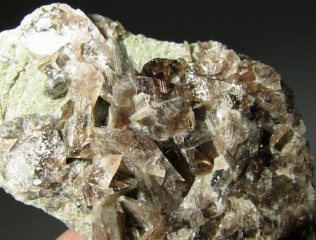 Aggregate of dark green to brown well defined Vesuvianite crystals