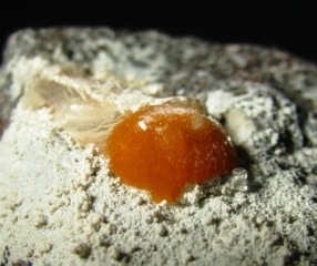 Bright orange isolated sphalerite crystals in evidence on quartz