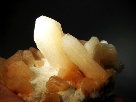 Colorfull heulandite crystals with bright orange color in association with pink well defined Stilbite crystals (till 4 cm) on a bed of white mordennite crust