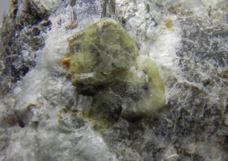 Pale yellow rodizite crystalof 1 cm in evidence on pegmatite